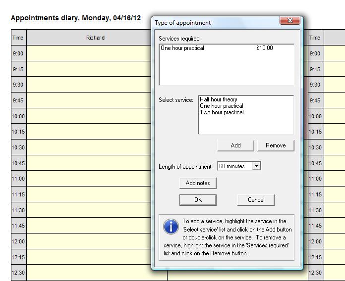 Select the services required for the appointment and the length of the appointment.