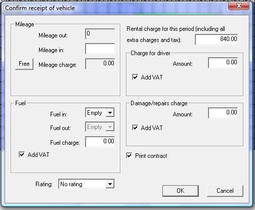 To issue a vehicle for rental click on the outgoing vehicle on the toolbar and to receive a vehicle at the end of the rental click on the incoming vehicle. The vehicle return dialog is as follows: << Previous